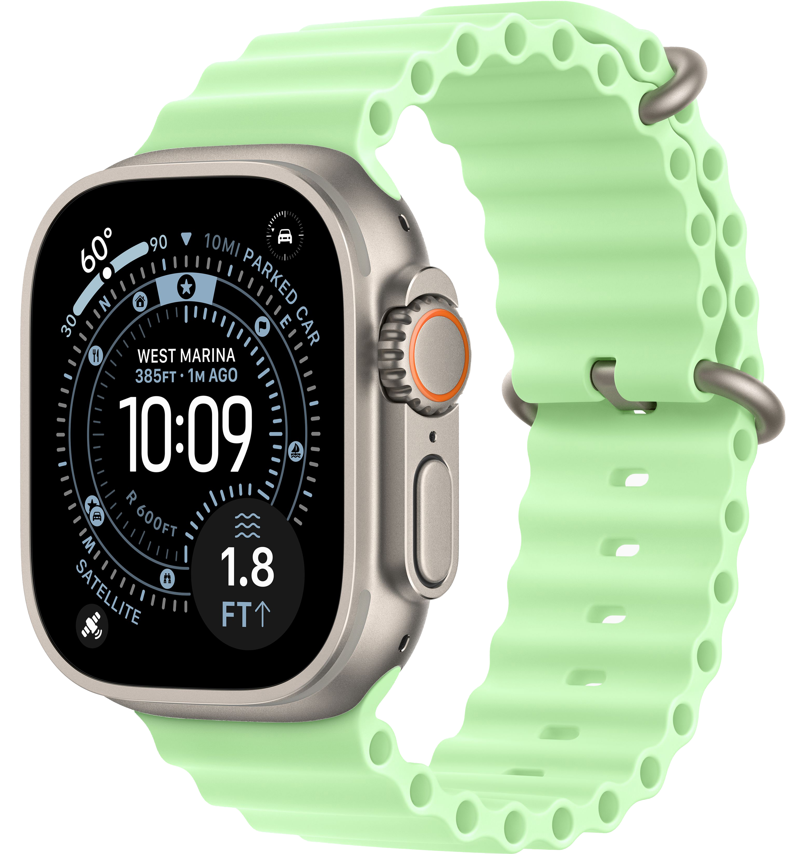 —Apple Watch Ultra 3 (2025) Natural Titanium Neon Green Ocean band
